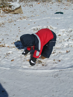 We had our first snow in 2011. Somehow the southern part of the state got all the snow and we ended up with a light dusting with maybe a half inch or so. Oh well... it didn't stop us from having a good time outside! Miraculously my husband's day off was today and he could enjoy it with us! My brother also came over to enjoy some snow time, which of course L just loved. He loooves his Uncle Mike.